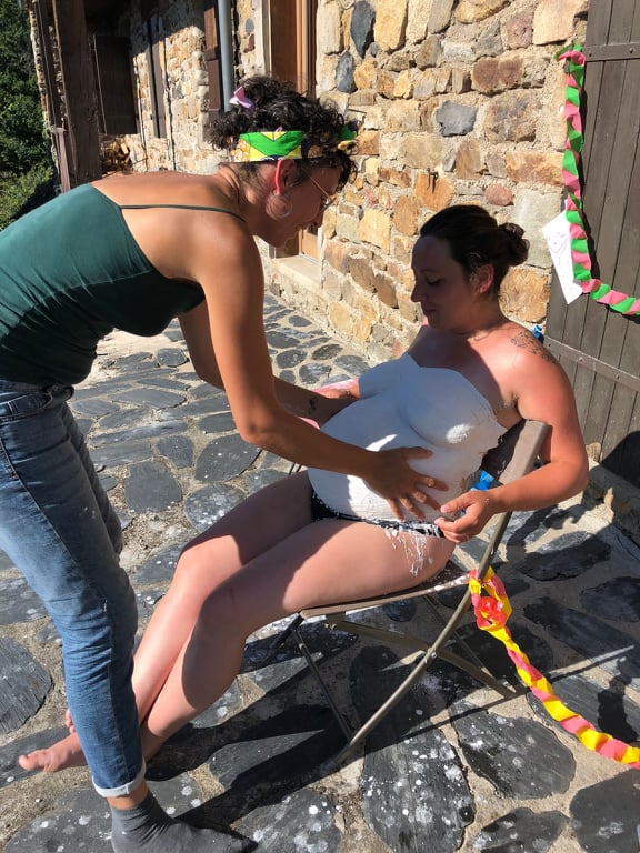 Au cours de cette journée consacrée à la future maman, il est possible de faire beaucoup de choses, selon les envies énoncées par la future maman ou selon les idées de son cercle d’amies: massages, moulage du ventre, dessins au henné, poèmes, chants, coiffures, confections d’objets de reliance etc.