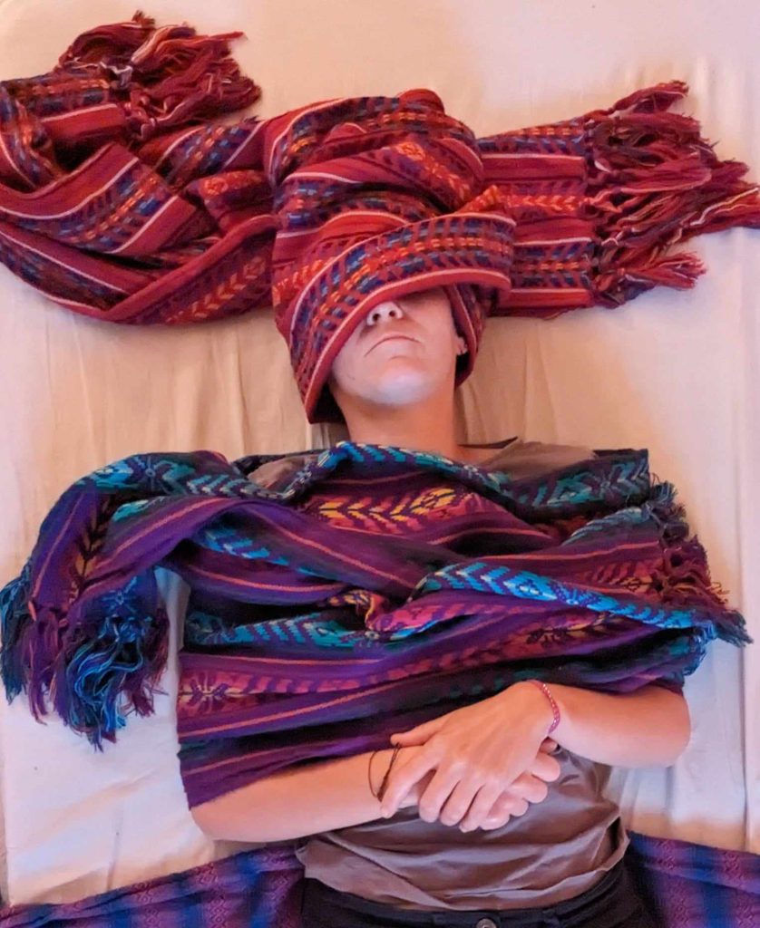 Durant ce soin, j’alterne différentes techniques avec le tissu sur tout votre corps: bercements, étirements, serrages, vibrations…